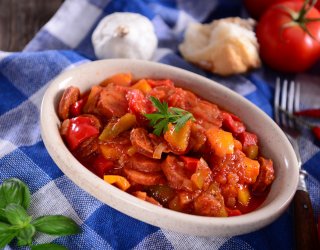 Leczo tradycyjne to nazwa gulaszu węgierskiego przygotowywanego z papryki i p...