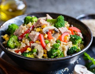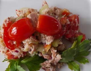 Sałatka z kuskusem, tuńczykiem i warzywami , wprost na drugie śniadanie do pr...