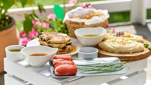 Sałatka, jajko pieczone z awokado, szparagi zawijane w szynkę parmeńską, a do tego cytrynowe babeczki, słodkie bułeczki i napój, który dodaje mocy!...