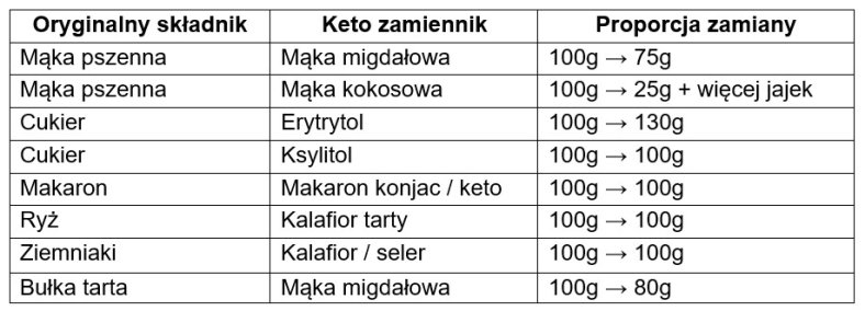 Zamiana składników to fundament keto gotowania. Oto praktyczny przewodnik: