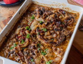 Zapiekana karkówka w sosie cebulowym to danie, które łączy mięso z delikatnym...