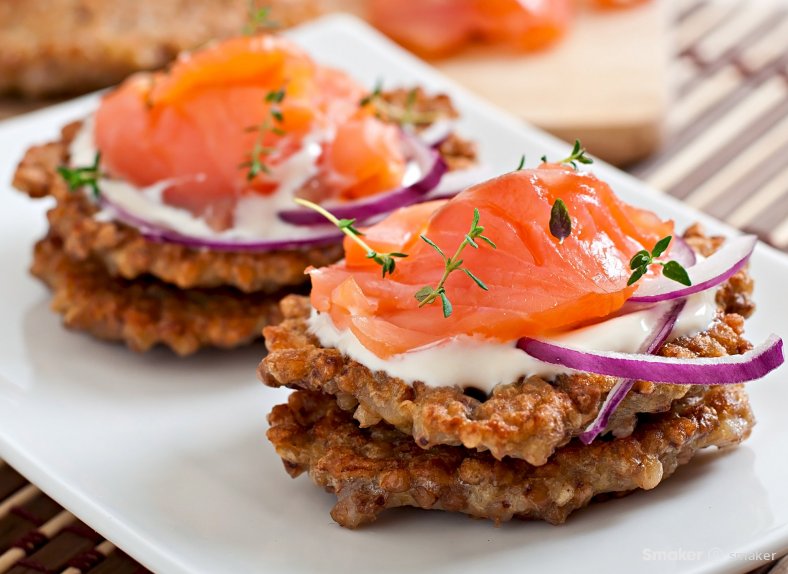Wśród przepisów na placuszki na śniadanie nie może zabraknąć również tych w wersji wytrawnej. Możesz przygotować je z kaszy gryczanej i zaserwować z wędzonym łososiem. Idealnym zwieńczeniem całości będzie sos czosnkowy na bazie świeżego czosnku, jogurtu naturalnego, majonezu, soku z cytryny oraz soli i pieprzu.
