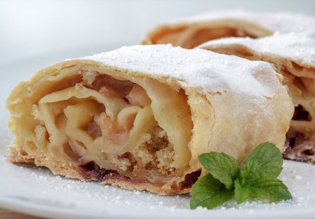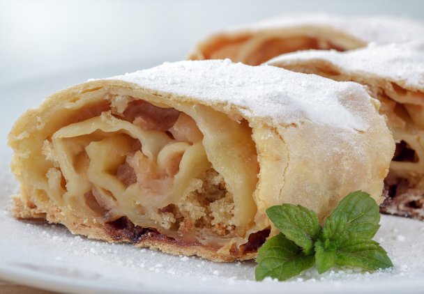 Piecz apfelstrudel przez około 40 minut w temperaturze 190°C. Powinien się zarumienić z zewnątrz.