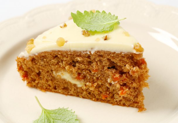 Wystudzony chlebek marchewkowy z serem udekoruj kremem i posiekanymi orzechami.