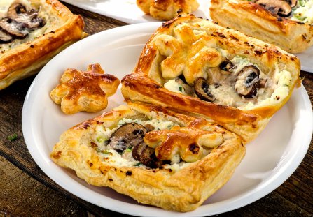 To danie wygląda jak elegancka restauracyjna przystawka, a robi się je w kilkanaście minut! To ciasto francuskie z pieczarkami w formie przyjemnych w jedzeniu prostokątów.