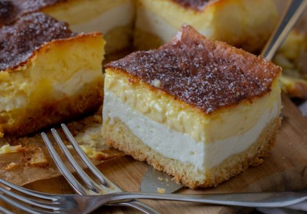 Delikatny biszkopt, a na nim puszysta, pieczona masa śmietanowa tworzą duet, w którym zakochasz się od pierwszego kęsa. Ciasto Kujawiak jest miękkie, kremowe i cudownie pachnie wanilią.