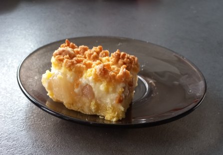 Prosty przepis na ciasto z gruszkami i budyniem.