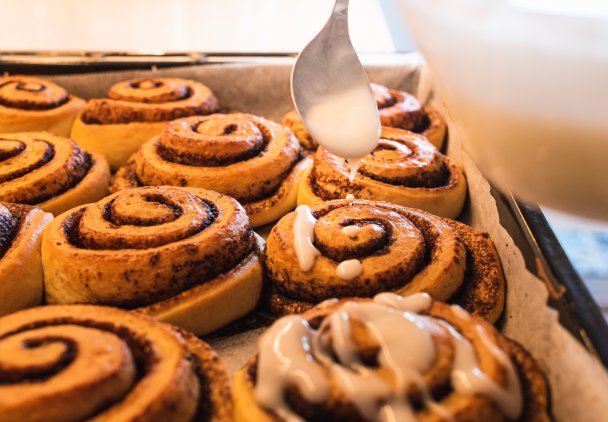 Przestudzone cynamonki polej gotowym lukrem. Smacznego!