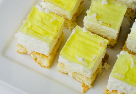 Cytrynową chmurkę bez pieczenia wstaw do lodówki na co najmniej 4 godziny, do całkowitego zastygnięcia warstw.