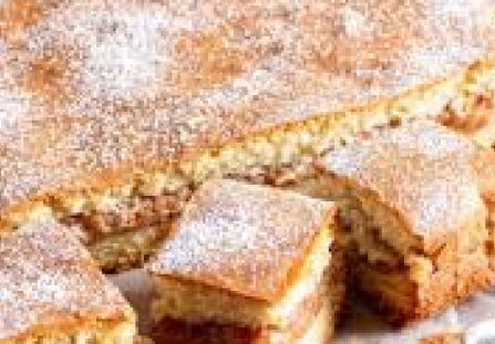 Tłuszcz posiekać z mąką i proszkiem do pieczenia, dodać cukier puder i jajka. Połączyć z całością szybko wyrobić i pozostawić do zestudzenia. Ciasto podzielić na dwie części. Rozwałkować na wielkość blachy. jedną część wyłożyć na wysmarowana tłuszczem blachę i posypać tartą bułką. Na to wyłożyć jabłka i posypać cukrem i przykryć drugim ciastem. Po upieczeniu ciasto polukrować