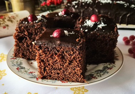 Nie zdążyłyśmy upiec piernika na święta, nie szkodzi! Zrobimy szybkiego murzynka z łyżką przyprawy do piernika. Ciasto będzie wilgotne, puszyste o delikatnie korzennym aromacie. Będzie pachniało w całym domu. Pieczenie murzynka potrwa chwilę, a efekt nas zaskoczy bardzo pozytywnie. Przyozdobimy murzynka korzennego świątecznie. Ciasto wszystkim się spodoba i posmakuje. Zwłaszcza dzieci będą zachwycone, bo nasz murzynek to ciasto lekkie, mocno czekoladowe, z dodatkiem przyprawy piernikowej smakuje doskonale.