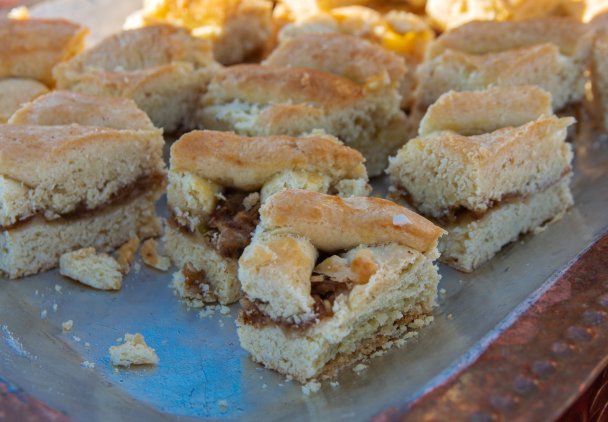 Placek królewski przekładany jest aromatycznymi jabłkami i orzechami. Wyśmienicie smakuje do jesiennej herbaty!