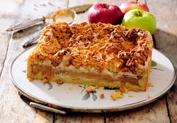 Skubaniec to popularne ciasto, które królowało na polskich stołach w czasach PRL-u. Klasyczny skubaniec był pieczony z udziałem śliwek. W tym przepisie zastąpiliśmy je startymi jabłkami. Do tego obowiązkowo kruche ciasto, puszysta piana z białek i chrupiąca posypka. Jest tak dobre, że znika błyskawicznie i to do ostatniego okruszka.