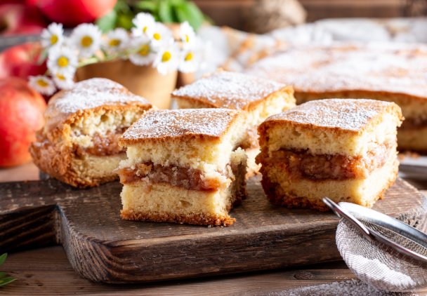 Szarlotka babci to klasyczne ciasto uwielbiane przez wszystkich. Kruche, delikatne ciasto z dodatkiem śmietany skrywa w sobie obfite, soczyste nadzienie z tartych jabłek i aromatycznego cynamonu. To wyjątkowo prosty przepis na dużą blachę, która zniknie w mgnieniu oka. Wypiek świetnie smakuje zarówno na zimno, jak i na ciepło, posypany cukrem pudrem.