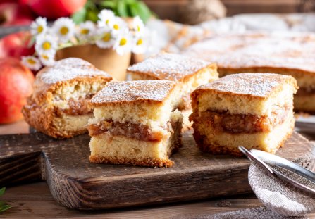 Najlepsze są jabłka kwaśne i twarde, takie jak odmiany: Szara Reneta, Antonówka lub Jonagold. Dzięki temu idealnie kontrastują ze słodyczą ciasta i cukru. Odpowiednia twardość zapobiega zamienieniu się owoców w papkę podczas pieczenia. Starte jabłka zachowają swoją strukturę i będą przyjemne w jedzeniu. Tarcie na tarce o dużych oczkach jest zalecane, ponieważ nadzienie będzie bardziej jednolite, zwarte i soczyste. Pokrojenie jabłek w kostkę sprawi, że warstwa będzie luźniejsza i może mieć zbyt dużo przestrzeni między poszczególnymi kawałkami. Jeśli wolisz szarlotkę z jabłkami krojonymi w kostkę, upewnij się, że jest ona bardzo drobna.