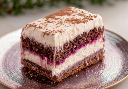 Zimowa Dama to pyszne ciasto czekoladowe przełożone kremem śmietankowym i warstwą wiśniową.