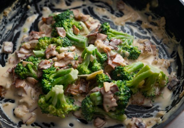 Brokuły w sosie serowym z dodatkiem chrupiącego boczku to aromatyczne, kremowe danie, które będzie świetnym dodatkiem do obiadu, ale także samodzielną przekąską czy lunchem. Całość przyrządzisz bardzo szybko, w zaledwie 20 minut. Aromatyczny i wyrazisty smak serów i boczku pozwoli odczarować niezbyt lubiane przez wszystkich warzywa.