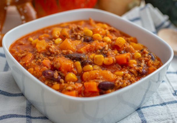 Chili con carne to pożywne, rozgrzewające danie kuchni meksykańskiej - w sam raz na chłodne, jesienne dni. A ponieważ zaczął się sezon dyniowy, możesz śmiało wzbogacić meksykański klasyk o aksamitne, dyniowe purée. Chili con carne z dynią możesz podać w tortilli, zaserwować z pieczywem, ryżem lub ziemniakami.