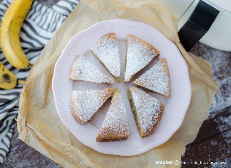 Do rozgrzanego urządzenia wstawić formę z ciastem. Ustawić czas na 35 minut, umieścić formę w urządzeniu Airfryer i kontynuować pieczenie do momentu aż urządzenie wyemituje sygnał dźwiękowy.