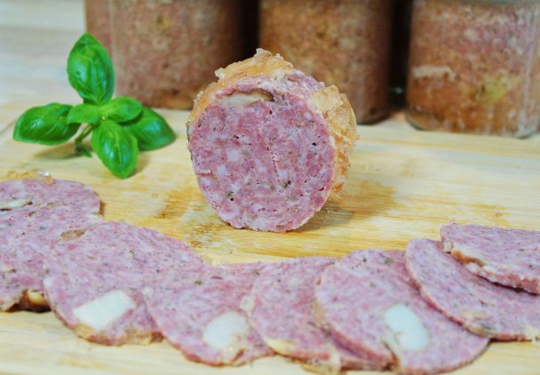 Na początku łopatkę przepłuczcie pod zimną bieżącą wodą, następnie należy ją zmielić w maszynce do mielenia mięsa na średnim oczku. Już teraz możemy przyprawić mięso, przełóżcie je do większej miski aby nic nie wylatywało podczas mieszania, zaczynamy od dodania wody, następnie dorzucamy majeranek, czosnek granulowany, sól peklującą, morską, żelatynę i pieprz, całość dokładnie mieszamy tak około 10 minut, miskę odstawiamy i zajmiemy się grzybami. Rozgrzewamy mocno patelnię i wlewamy olej, następnie wrzucamy drobno pokrojoną w kostkę cebulę i posiekany czosnek, całość mieszamy i podsmażamy około 5 minut, po tym czasie dorzucamy prawdziwki i w dalszym ciągu podsmażamy aż grzyby zmniejszą swą objętość i wytracą większość wody. Następnie zawartość patelni należy przestudzić i dodać do miski z mielonym mięsem, całość jeszcze raz należy dokładnie wymieszać. Już teraz będziemy pakować mięso do słoików, które uprzednio dokładnie zostały wymyte i wyparzone, zakrętki również. Mięso wkładając do słoików należy dokładnie uklepywać aby pozbyć się nadmiaru powietrza i na końcu zostawiamy 2 cm wolnej przestrzeni od góry słoika, nigdy nie pakujemy mięsa po brzegi słoika ponieważ to grozi rozszczelnieniem konserwy. Zanim zakręcimy słoiki należy dokładnie obmyć rany słoików czystą ściereczką na mokro i sucho, dopiero wtedy zakręcamy słoiki i możemy przystąpić do pierwszej pasteryzacji. Słoiki przekładamy na blachę do pieczenia i pasteryzujemy w piekarniku. Oczywiście można również zrobić to metodą tradycyjną garnkową, czasy się nie zmieniają. 1 pasteryzacja trwa 80 minut w 105 stopniach, góra dół, bez termoobiegu, blachę należy umieścić na spodzie piekarnika, od piekarnika zimnego, czas mierzymy od osiągnięcia zadanej temperatury, po tym czasie wyciągamy słoiki z piekarnika, one muszą odpocząć w temperaturze pokojowej przez 24 godziny. Po tym czasie, będzie kolejna 2 już pasteryzacja która będzie trwała 60 minut, powtarzamy całą procedurę, 3 pasteryzacja będzie trwała tylko 50 minut i gotowe. Tak przeprowadzona 3 krotna pasteryzacja to tyndalizacja, dzięki której możemy takie konserwy przechowywać miesiącami, a w odpowiednich warunkach nawet i latami. Zapraszam serdecznie na film z przepisem, tam dokładnie pokazuję całą procedurę. Pozdrawiam serdecznie i życzę fantastycznej zabawy przy produkcji domowej mielonki.