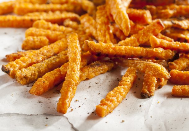 Frytki z batatów, czyli słodkich ziemniaków, są wspaniałą przekąską czy dodatkiem do obiadu. W tej wersji są chrupiące i dobrze doprawione. Pokochają je wszyscy domownicy – dorośli i dzieci. Stanowią znacznie zdrowszą alternatywę dla klasycznych frytek smażonych ze zwykłych ziemniaków na głębokim tłuszczu. Bataty są znacznie zdrowsze od klasycznych ziemniaków. Zawierają dużo wapnia, beta-karotenu i witaminy E, dzięki czemu stanowią idealny dodatek do dań dziecięcych i nie tylko. Wspierają utrzymanie mocnych kości oraz zębów, a także prawidłową kurczliwość mięśni.