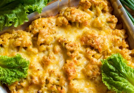 Kalafior zapiekany w sosie serowym najlepiej smakuje od razu po wyjęciu z piekarnika – gorący, z lekko przyrumienioną skorupką i kremowym wnętrzem. Świetnie komponuje się z gotowanymi ziemniakami lub świeżą bagietką. To klasyczne danie, które zawsze smakuje jak domowy obiad pełen ciepła.