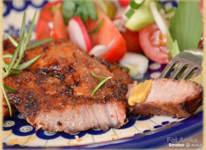 Karkówkę myjemy, osuszamy i każdy plaster rozbijamy nieco tłuczkiem z obu stron