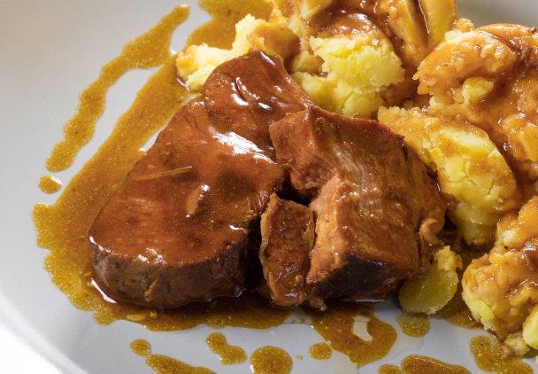 Karkówka w sosie duszona do miękkości na wolnym ogniu to bardzo delikatne, wprost rozpływające się w ustach mięso. Smakuje idealnie z ziemniaczanym purée, choć możesz je podać także np. z kaszą. Nie zapomnij o dodatku w postaci porcji świeżych warzyw!