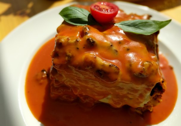 Klasyczna lazania z sosem pomidorowym to jedno z tych dań, które od lat kojarzy się z domowym ciepłem i kuchnią południa Europy. Warstwowa zapiekanka z makaronu, aromatycznego ragù i aksamitnego beszamelu jest sycąca, wyrazista w smaku i niezwykle uniwersalna. Sprawdza się zarówno jako rodzinny obiad, jak i danie podawane przy wyjątkowych okazjach. Sekret dobrej lazanii tkwi w prostych składnikach i cierpliwości. Długo duszony sos pomidorowy nabiera głębi, mięso staje się kruche, a przyprawy tworzą harmonijną całość. Beszamel nadaje potrawie delikatności i równoważy kwasowość pomidorów, a zapieczony ser spaja wszystkie warstwy w jedną, apetyczną całość. Lazania to danie, które nie wymaga kulinarnej brawury, lecz uważności i czasu. Właśnie dlatego smakuje najlepiej wtedy, gdy pozwolimy jej chwilę odpocząć po upieczeniu, a nawet wtedy, gdy podamy ją następnego dnia