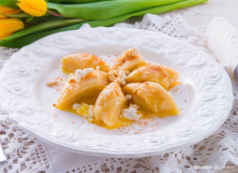 Ugotowane kluseczki serwujemy na ciepło polane roztopionym masłem i posypane twarogiem oraz cukrem. Smacznego!