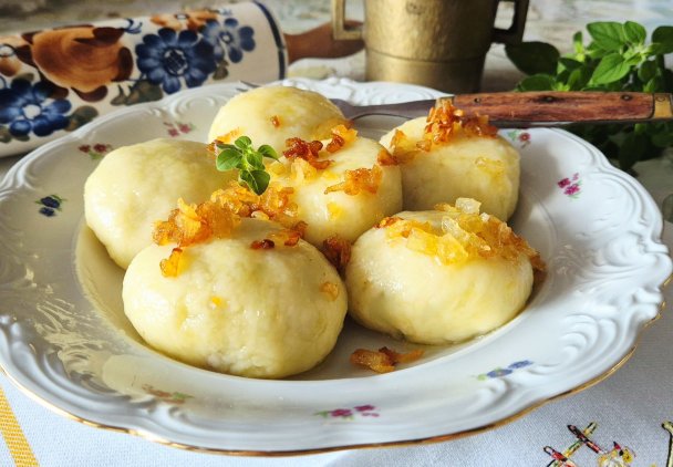 Wyjmujemy łyżką cedzakową, wykładamy na talerze i okraszamy cebulą podsmażoną na maśle na złoty kolor.