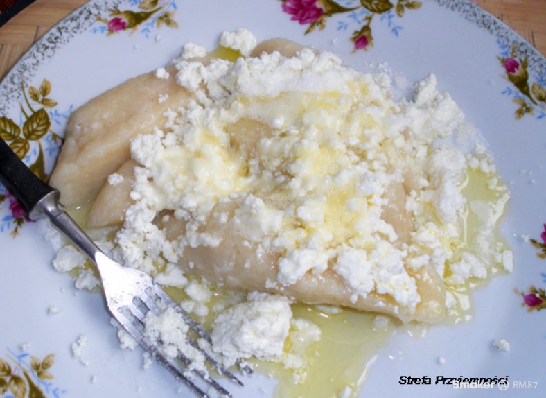 Ugotowane i wystudzone ziemniaki ugniatamy albo przepuszczamy przez praskę. Na stolnicy kładziemy rozgniecione ziemniaki, dodajemy do nich mąkę, twaróg i wbijamy jajko.