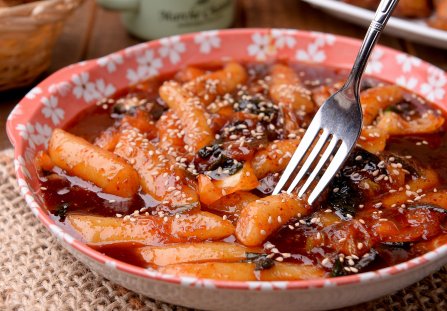 Ugotuj kluski w lekko osolonej wodzie (kilka minut, do chwili ich wypłynięcia na powierzchnię). Ugotowane garaetteok przełóż na chwilę do zimnej wody.