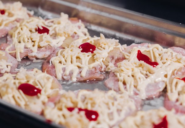 Na wierzchu nałóż po kleksie keczupu. Kotlety belwederskie wstaw do piekarnika nagrzanego do 180 st. Celsjusza i piecz przez 25-30 minut, do zrumienienia. Podawaj na ciepło, z ulubioną surówką i dodatkiem skrobiowym.