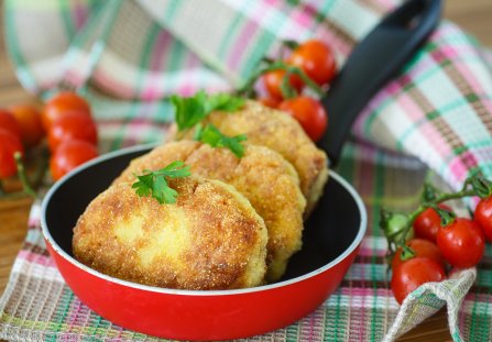 Kotlety rybno-ziemniaczane panieruj w jajku i bułce tartej.