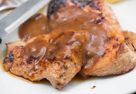 Z powrotem przełóż na patelnię mięso i chwilę je podgrzej. Podawaj kotlety wieprzowe w sosie z wybranymi dodatkami, np. z ziemniakami.