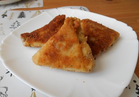 Jajka rozbić i roztrzepać widelcem. Maczać w nich krokiety i obtaczać w bułce tartej. Następnie na rozgrzanym oleju smażyć krokiety z farszem na złoty kolor.