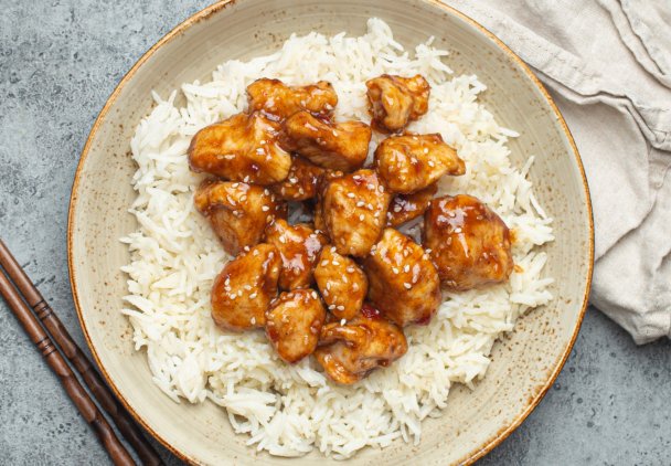 Kurczaka w sosie podawaj w towarzystwie ugotowanego ryżu. Danie oprósz ziarnami białego sezamu. Smacznego!