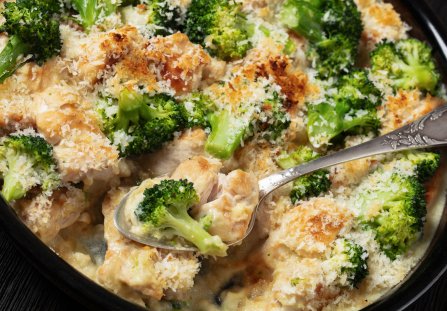 Kurczak w sosie brokułowym to aromatyczne danie składające się z soczystego mięsa skąpanego w kremowym sosie na bazie bulionu z dodatkami brokułu. Całość obowiązkowo należy posypać serem!