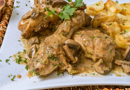 Kurczak w sosie grzybowym to danie proste i szybkie do przygotowania, a jakże pyszne! Warto skosztować go w sezonie grzybowym, choć można też przygotować sos z grzybów suszonych. Kurczak smakuje doskonale z ziemniaczanym purée lub z ryżem.