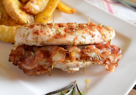 Kurczak z gorgonzolą i boczkiem to elegancka, a zarazem prosta w przygotowaniu potrawa. Zaskakuje bogactwem smaku i kremową konsystencją serka. Idealnie sprawdzi się na grilla, a także podczas spotkania ze znajomymi przy kolacji.