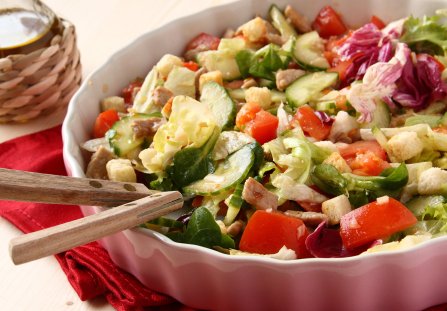 Świąteczne sałatki kojarzą ci się tylko z dużą ilością majonezu? Postaw na naszą propozycję, która pasuje do wielu dań na ciepło, a także jako przekąska na wieczór po tłustych potrawach. To lekka sałatka świąteczna z kwaskowato-słodkim sosem. Podaj ją w dużej, eleganckiej misie albo w pojedynczych pucharkach.