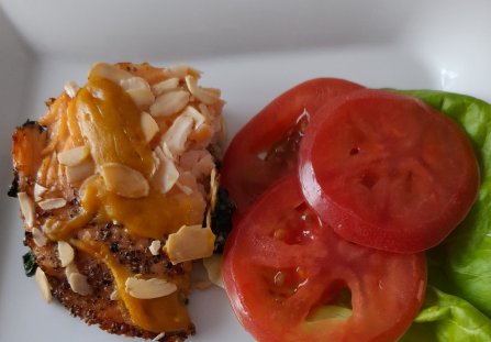 Łosoś pieczony na szpinaku z dodatkiem migdałów i aromatycznego sosu może być podany na wigilię lub z dodatkiem np. frytek jako danie obiadowe.