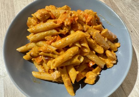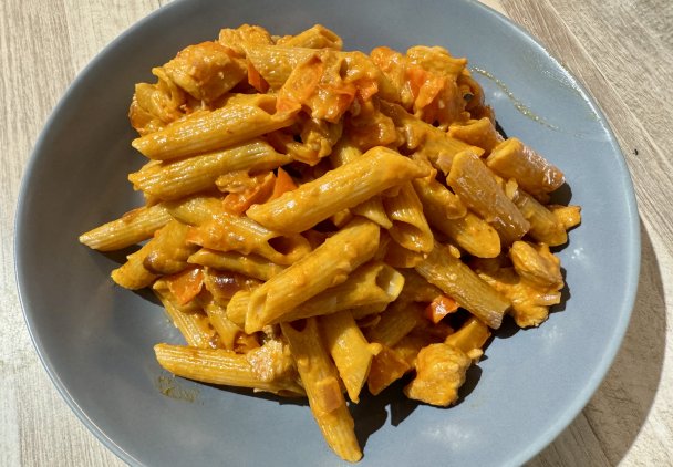 makaron (użyłem pełnoziarnistego) gotujemy al dente wg przepisu na opakowaniu, a potem odcedzamy