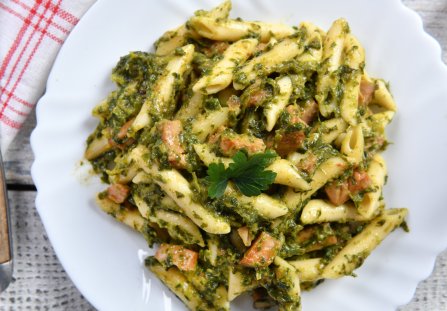 Makaron ze szpinakiem i kurczakiem to prawdziwa uczta smaków. To coś dla miłośników sycących dań, które są łatwe do przygotowania, proste do odgrzania, a także mają same łatwo dostępne składniki.
