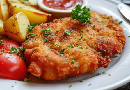 Najbardziej chrupiący schabowy zawsze podawaj z dodatkiem lekkiej sałatki, od razu po przygotowaniu. Resztki przechowuj w lodówce i serwuj po podgrzaniu, ale nie będzie już tak chrupiący.