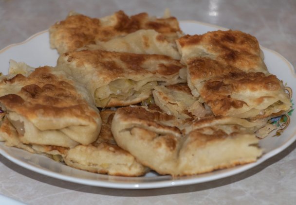 Gotowe naleśniki wiejskie z kapustą podsmaż na maśle. Na drugi dzień możesz je odgrzać w piekarniku albo także podsmażyć.