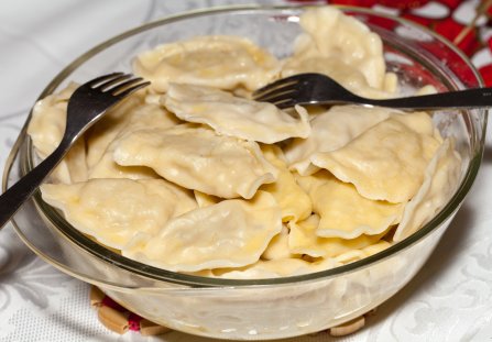 Pierogi huculskie gotuj we wrzącej osolonej wodzie przez około minutę od momentu wypłynięcia ich na powierzchnię.