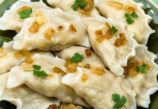 Pierogi ruskie to kulinarny powrót do smaków dzieciństwa i wakacji spędzonych u dziadków. Cieniutkie, elastyczne ciasto otula aksamitny, kremowy farsz z gotowanych ziemniaków, twarogu i złocistej cebulki. Zawsze muszą być idealnie doprawione pieprzem i podane ze skwarkami.