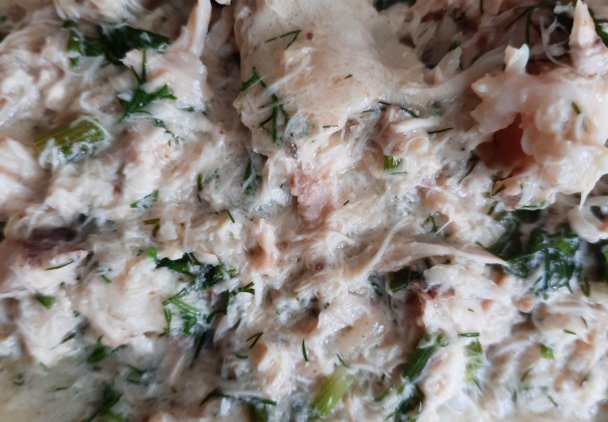 ugotować mięso z kurczaka aż odpadnie od kości. w czasie gotowania odlać przynajmniej szklankę bulionu, odstawić do wystygnięcia